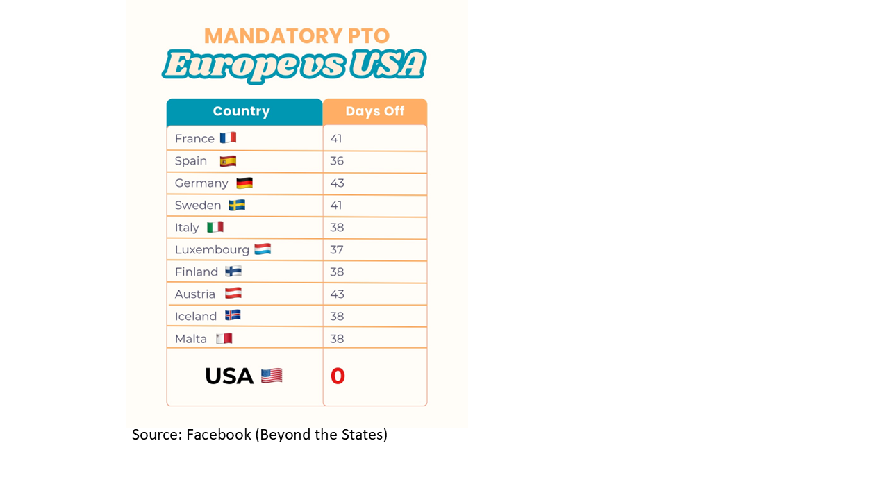 2. กฎหมายเอื้อต่อการทำธุรกิจ เช่น การเลิกจ้างทำได้ง่าย ตราบใดที่ไม่ผิดกฎหมายก็สามารถทำได้โดยไม่ต้องให้เหตุผล, ไม่มีกำหนดวันหยุดขั้นต่ำ, กฎหมายล้มละลายก็ไว้สำหรับช่วยให้ปรับโครงสร้าง