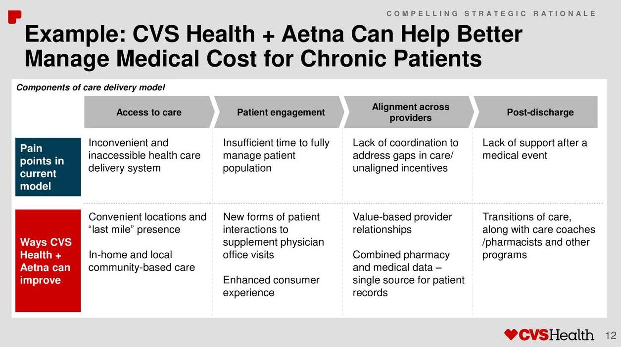 โดยภาพรวมแล้วผมมองว่าในอนาคตเมื่อ CVS Health กับ Aetna รวมกันแล้ว บริษัทจะเป็นเจ้าใหญ่ในตลาดที่ทำตั้งแต่รับประกันสุขภาพไปจนถึงการจัดการสมาชิก และยังควบคุมหน้าร้านที่เป็นร้านค้าปลีกยาที่มีสาขาทั่วประเทศด้วย ดังนั้นในอนาคตบริษัทควรจะสามารถใช้หน้าร้านเหล่านี้ให้เป็นประโยชน์ในการให้บริการทั้งเรื่องจ่ายยาไปจนถึงบริการที่เกี่ยวข้องต่างๆได้หลากหลายมากขึ้น
